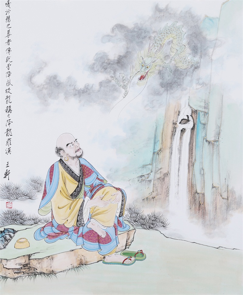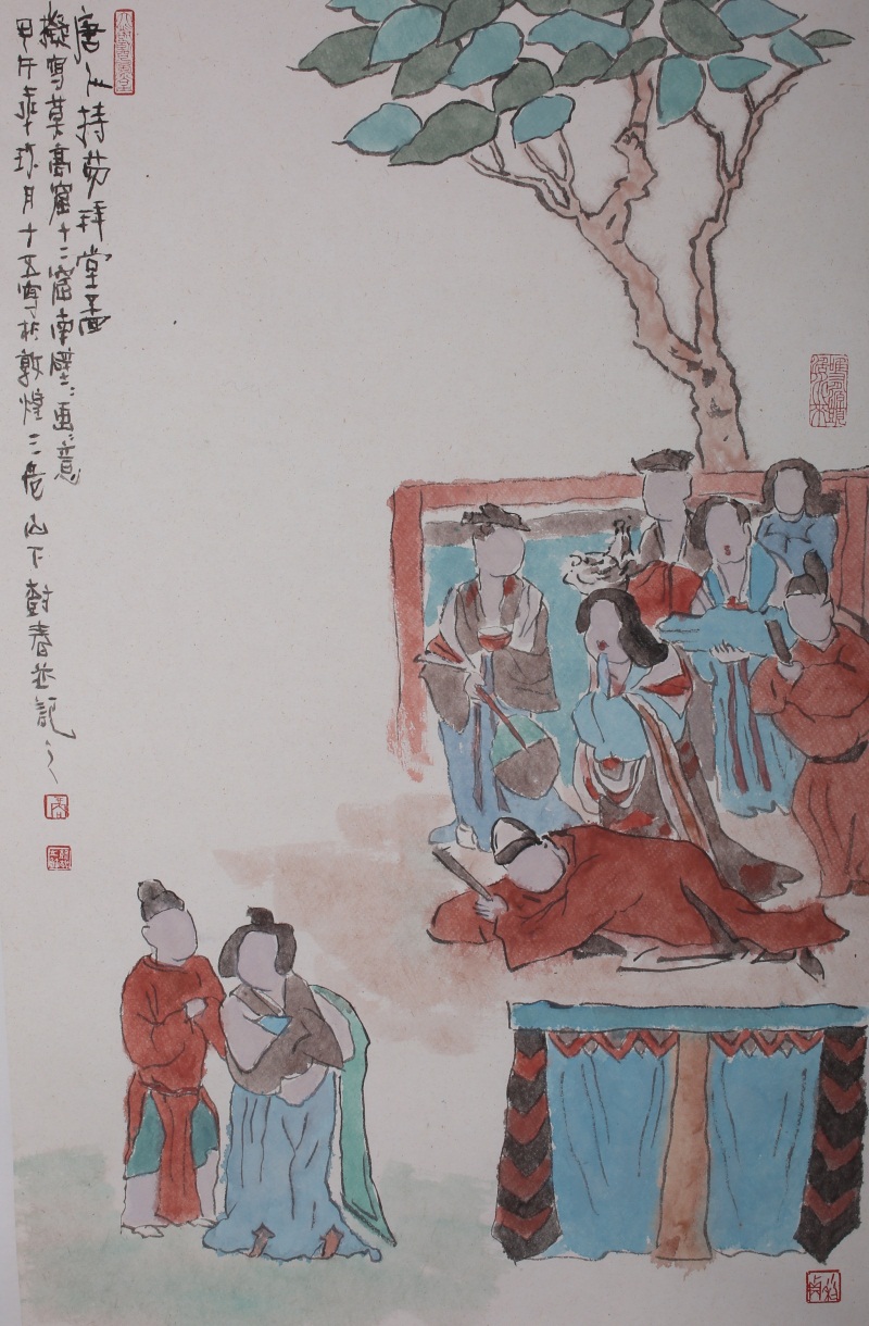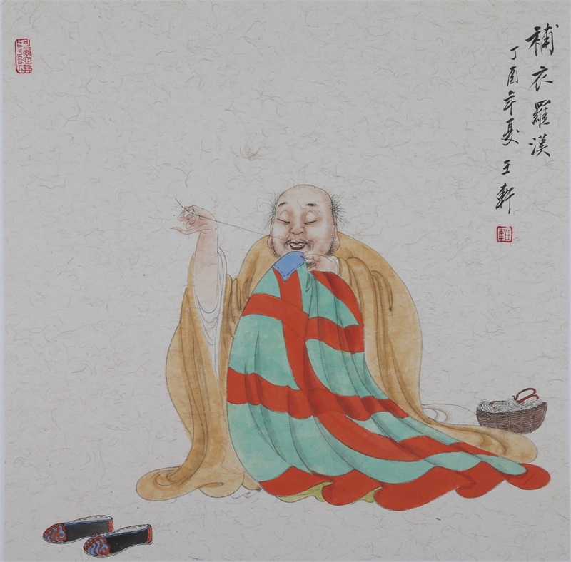 王轩的绘画以山水人物为主,从张大千到亚明,漫长的学习过程,使他累积了丰富的理性知识,掌握了深厚的绘画功底。众所周知,无论是张大千先生还是亚明老师,都对中国画的传统有着极为深刻的研究和认识,特别强调学生对传统的深度理解和反省。亚明老师在其理论著述和对学生教诲中,特别注重对传统理解与继承,中国画强调水墨线条的表现力,除造型功能外,对其内在美尤为重视,画者的个性情感,通过水墨线条完美展现。王轩深悟老师的意图,在他擅长重彩人物画中,向我们展示了他对传统,特别对水墨线条的充分理解与微致把握,细笔人物对线条要求极高,但线条造型只在其次,更重要的是表达更深层的视觉理性和内在美,要求表现出韵律、变化、节奏和张力。细笔重彩人物由于要服从人物的本身特征,表现范围相对具体,表达方式变化局限,这更增大了绘画难度,特别要求画家对笔墨有驾驭能力。王轩的画中,无论多细的线条,都能有一个运笔的完整过程,或流畅或沉稳,转折自如,笔断意连,恬淡绵静,朴实自然,无论人物众多的场面,还是小品特写都描绘的含蓄有致,个性明显。我认为王轩兄拥有“更从平淡见天真”的可贵气息。